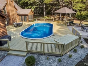 Outdoor living is where Tract 1 truly shines. The property includes a large swimming pool complemented by a newly constructed deck, creating an exceptional space for entertaining, family gatherings, or quiet summer afternoons. The pool area offers both privacy and functionality, making it a natural focal point during warmer months.