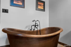 Nearby, an outdoor wood-burning fireplace adds another layer of charm and usability. Whether hosting evening gatherings, enjoying crisp fall nights, or simply unwinding under the stars, this feature enhances the outdoor experience and reinforces the property’s appeal as a year-round retreat.