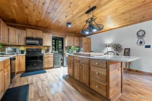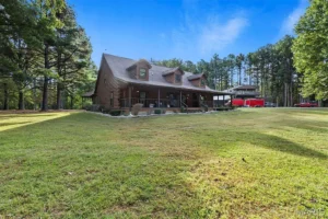 The log home features three spacious bedrooms and three full bathrooms, offering ample room for family, guests, or extended stays. From the moment you step inside, the craftsmanship and warmth of the log construction create a welcoming atmosphere. Exposed wood, generous living spaces, and thoughtful layout combine rustic charm with modern comfort, making this home suitable as a full-time residence or a luxurious weekend retreat.