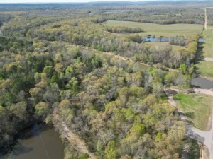 The blend of open land, wooded sections, water features, and river proximity creates a setting that feels both secluded and inspiring.