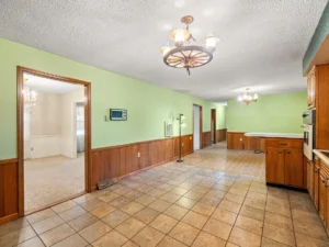 The kitchen with adjoining dining area offers plenty of room for daily meals and family interaction. With updating, this space could easily be transformed into a modern, open, and highly functional kitchen that complements today’s lifestyle while still maintaining the home’s classic charm.