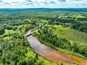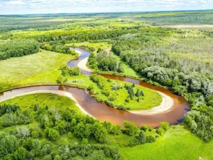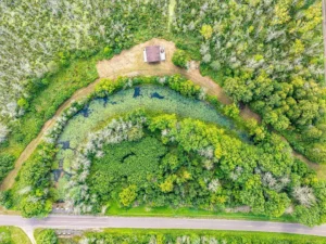 Adding to the property’s uniqueness is an oxbow (slough) from the nearby Sturgeon River, creating a dynamic natural feature that enhances both wildlife activity and scenic appeal. This quiet water area attracts birds, small mammals, and larger game, making it an exceptional environment for nature watching, photography, or hunting. The proximity to the river means you’re close to moving water without sacrificing the privacy and control of owning your own acreage.