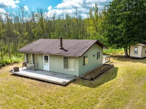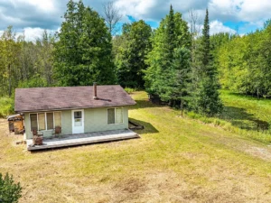 The land itself is a standout feature. Forty acres of mixed terrain provide diversity, character, and endless opportunities for exploration. The property is home to mature ash, maple, and cedar trees that create a beautiful forest canopy and vibrant seasonal color. In spring and summer, lush greenery surrounds the cabin, while autumn transforms the landscape into brilliant shades of gold, orange, and crimson. During winter, the snow-covered woods offer peaceful stillness and excellent tracking opportunities for wildlife enthusiasts.