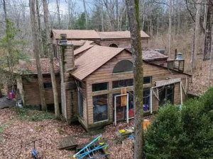 At the heart of the property stands a unique custom residence — a home that was once filled with warmth, character, and thoughtful architectural detail. Though it now requires significant restoration, the structure presents an exceptional opportunity for the right buyer to breathe new life into a truly special home. This is not a cookie-cutter design; it is a one-of-a-kind residence with distinctive craftsmanship and design elements that reflect creativity and care.