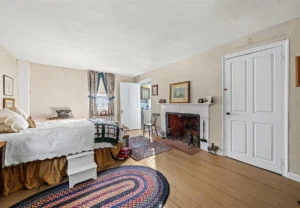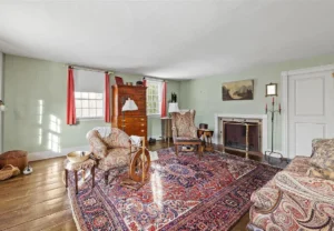 Inside, the Parson Smith Homestead reveals a carefully maintained interior that was finished in stages, illustrating four distinct architectural periods: Georgian, Federal, Greek Revival, and Victorian. Each room serves as a chapter in the story of American design. The Georgian influence is evident in the home’s balanced layout and formal proportions, characterized by refined woodwork and elegant fireplace mantels. Moving forward in time, the Federal period introduces delicate ornamentation and lighter stylistic details, subtly shifting the atmosphere while maintaining historical continuity.