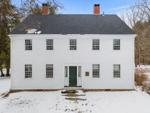 From the moment you approach the homestead along the storied stretch of River Road in Windham’s Historic Corridor, you sense the significance of the land beneath your feet. The setting is timeless. Mature trees frame the long drive, and expansive fields stretch outward in quiet dignity. The home itself rises with classic symmetry and proportion, reflecting the architectural sensibilities of its original era while showcasing layers of design influences that were added over generations. This is not simply a preserved structure—it is a chronological narrative written in timber, brick, and hand-forged hardware.