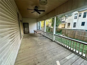 From the moment you approach the home, you can sense its significance. The exterior hints at the craftsmanship within, while covered front and back porches invite you to pause and imagine quiet mornings, evening conversations, and gatherings that span generations. These porches are more than architectural features—they are an extension of the home’s character, offering spaces to relax, reflect, and connect with the surrounding neighborhood.