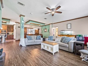 The home itself features a generous floor plan designed to accommodate a variety of lifestyles. Unlike many mobile homes, this one includes both a living room and a separate family room, providing multiple gathering spaces for everyday living, entertaining, or creating distinct zones for relaxation, work, or play. The presence of two main living areas makes the home feel larger and more functional, offering flexibility rarely found at this price point.