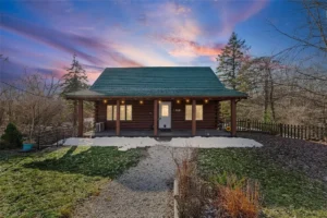 Inside, the cabin offers a thoughtfully designed layout that maximizes both comfort and functionality. The two-bedroom configuration provides flexibility for a variety of living arrangements, whether accommodating family members, guests, or creating a dedicated workspace. The presence of two full bathrooms adds convenience and enhances everyday comfort, particularly for hosting visitors or extended stays.