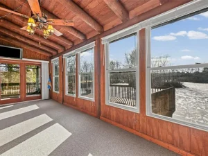 One of the standout features of this home is the heated sunroom located just off the kitchen. This bright and inviting space allows you to enjoy stunning views of the surrounding nature year-round. Whether sipping morning coffee, reading a book, or simply relaxing as the seasons change, the sunroom provides a peaceful vantage point to connect with the outdoors while remaining comfortable indoors. Its heating system ensures usability even during cooler months, making it a true extension of the living space.