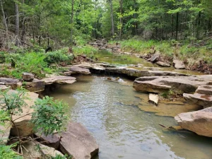 Perhaps one of the most captivating features of the property is the view of Little Kimbrough Creek. The creek adds a soothing soundtrack to the land, with water gently trickling over rocks and flowing through the forest. Sitting near the creek, listening to the water, and watching sunlight filter through the trees creates an atmosphere that is both calming and restorative. It’s the kind of place where time seems to slow down, allowing you to fully relax and appreciate the moment.