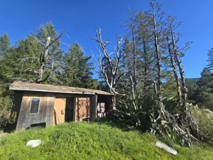 In addition to the cabins, the property includes three well-built sheds, which provide ample storage for tools, equipment, recreational gear, or seasonal items. These structures are versatile and can serve a variety of purposes, whether as workshops, storage for camping gear, or shelter for small animals. The presence of these sheds adds both convenience and functionality, ensuring that your belongings are safe and organized while you enjoy the outdoor lifestyle that Mattole Canyon has to offer.