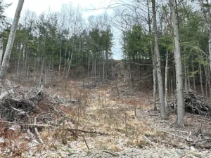 The property was recently and professionally logged, placing it in a prime stage for regeneration and renewed growth. This process not only opens up scenic views and sunlight but also encourages the development of young forest habitat—an environment highly attractive to wildlife. The land is now positioned for the next phase of its evolution, offering opportunities for stewardship, selective planting, or simply allowing nature to take its course. For buyers interested in long-term land management, the logging history provides both ecological and investment value.