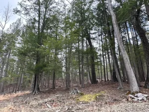 The forest composition itself is diverse and ecologically rich. A healthy mix of Oak, Maple, Ash, Birch, Pine, and Hemlock creates a dynamic woodland environment. This blend of hardwoods and evergreens contributes to year-round visual interest and supports a wide range of wildlife species. In autumn, the hardwood canopy transforms into a vibrant tapestry of color. In winter, evergreen stands provide contrast against snow-covered ground. Spring and summer bring renewed growth and lush greenery.