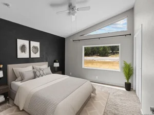 The primary bedroom serves as a peaceful sanctuary within the home. Generously sized and thoughtfully positioned, it offers a quiet place to relax at the end of the day. With enough space to accommodate larger furniture and personal touches, the room allows homeowners to create a comfortable and personalized retreat.