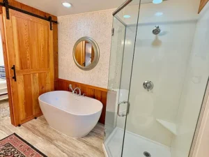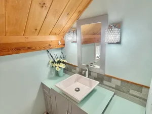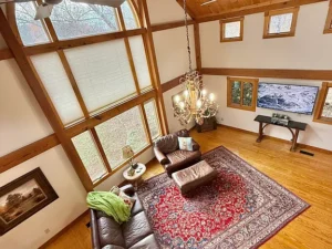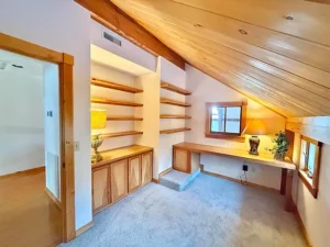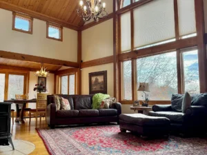 From the moment you step inside, the warmth and character of the home become immediately apparent. Natural materials and thoughtful craftsmanship create an inviting environment that feels both elegant and comfortable.