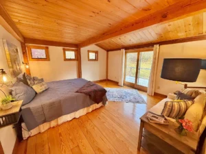 At the heart of the property sits a beautifully crafted custom post-and-beam home that perfectly combines rustic design with modern living. Post-and-beam construction is known for its durability, architectural beauty, and open interior spaces.