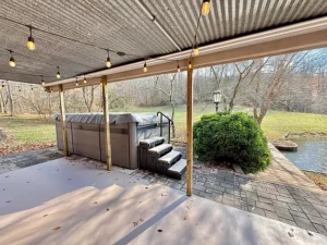 A swim spa offers the opportunity for exercise and relaxation throughout the year. After a refreshing swim, you can unwind in the hot tub while overlooking the peaceful pond and surrounding landscape.