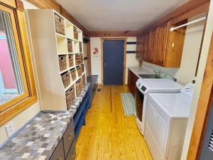 One of these features is the oversized laundry room and mudroom. This versatile space provides ample room for laundry tasks, storage, and organization. It also serves as a practical entry point after spending time outdoors on the property.