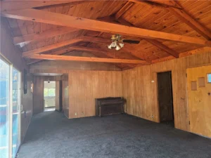 The living area offers plenty of flexibility for furniture arrangements, whether you prefer a cozy reading nook, a media space, or a place to display cherished family pieces. Soft sunlight filtering through the windows highlights the warmth of the interior and connects the indoors with the surrounding landscape. From almost any vantage point inside the house, you are reminded that you are nestled within a peaceful natural setting rather than surrounded by busy streets and crowded neighbors.